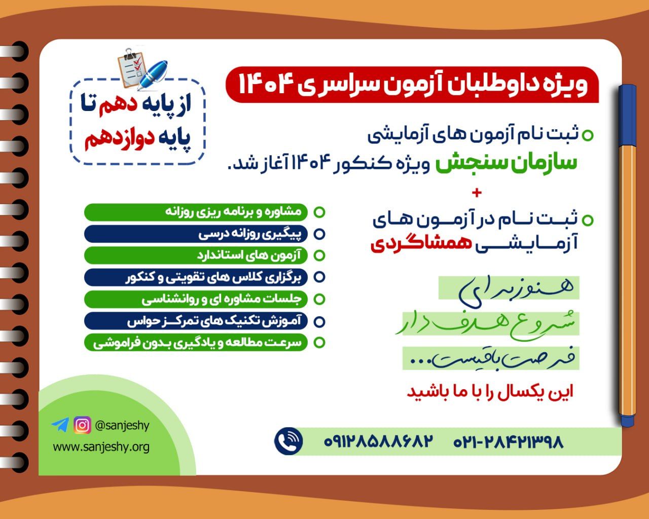 دانش آموزان و داطلبان کنکور 1404موسسه علمی آموزشی گام برتر ( همشاگردی ) برگزار می کند :
