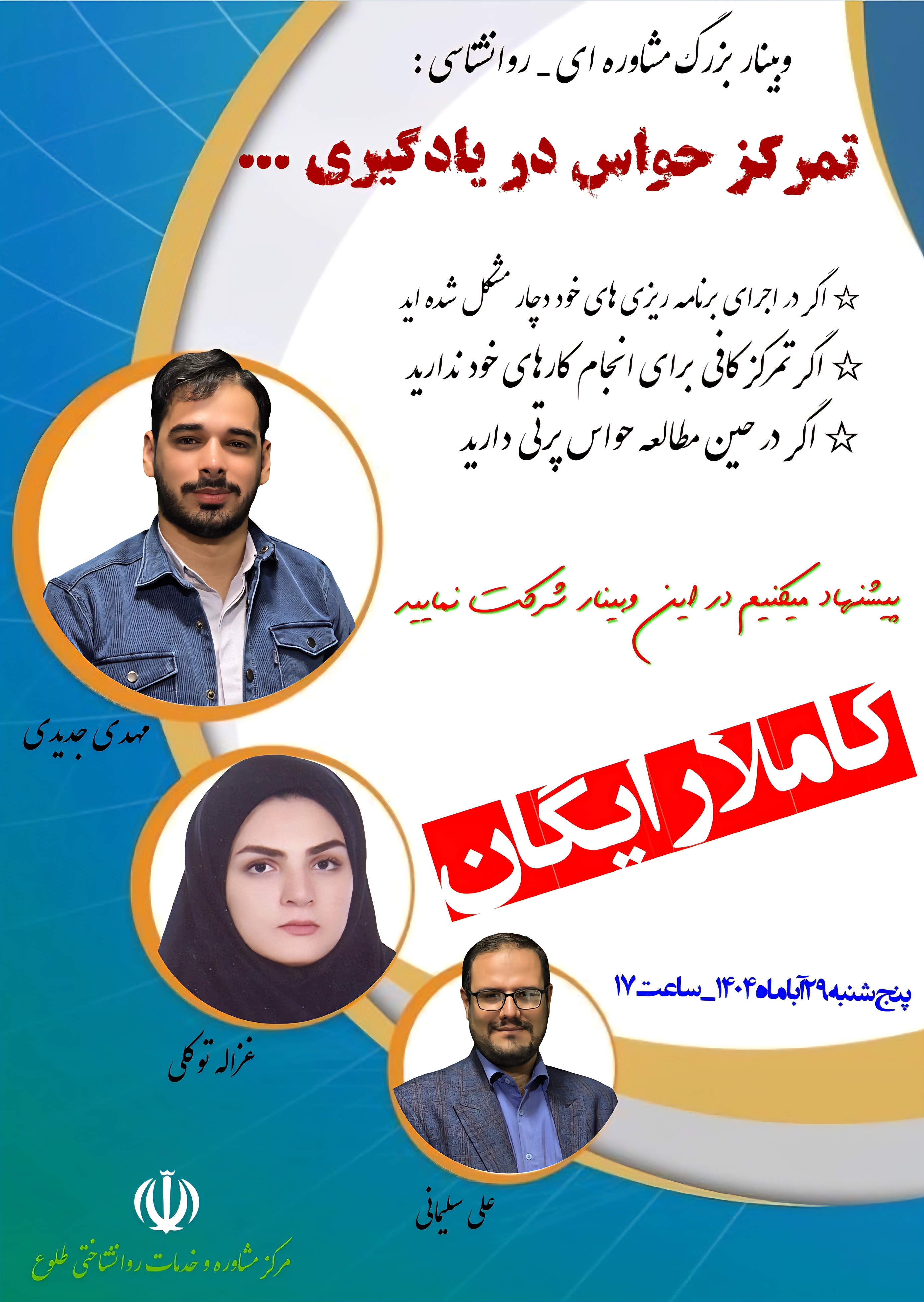 وبينار بزرگ مشاورهای – روانشناسی : تمرکز حواس در یادگیری + نکات ویژه افزایش تمرکز