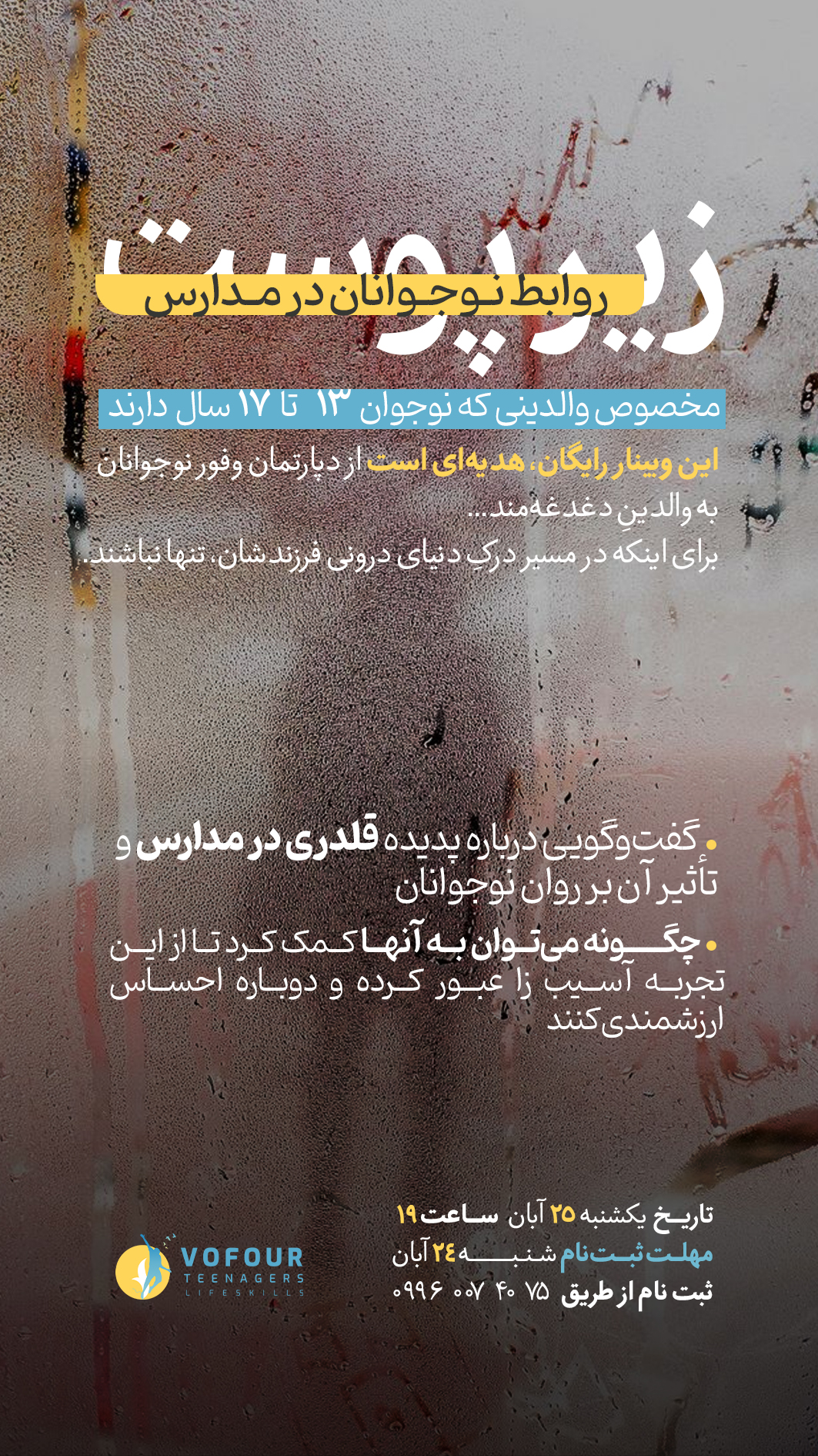 این وبینار رایگان هدیهی ما در دپارتمان نوجوانان مؤسسه وفور به شماست.