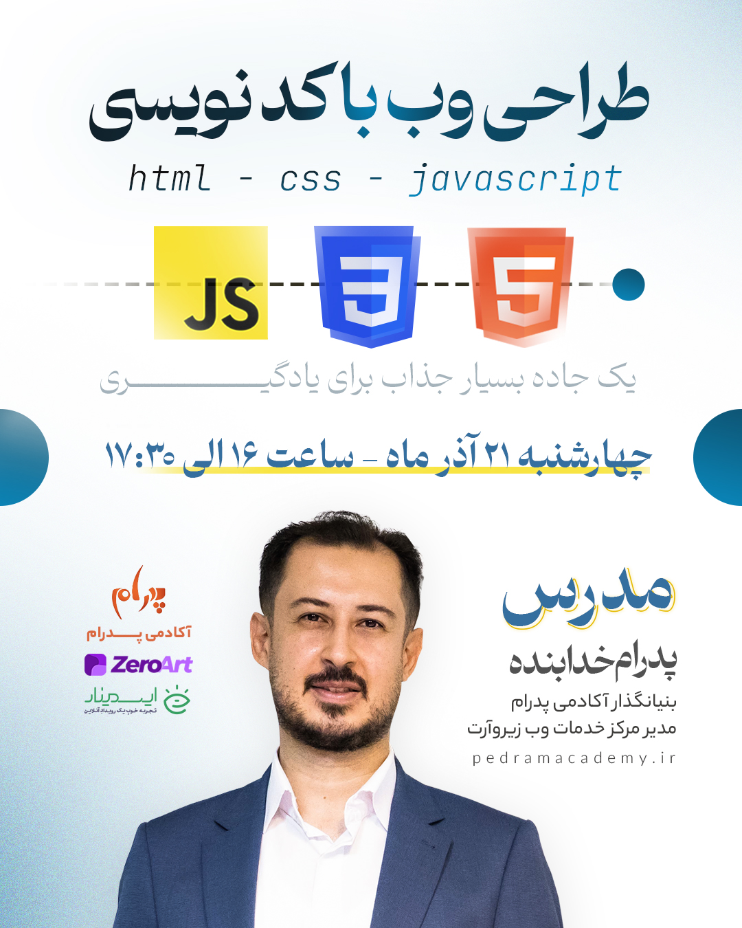 من پدرام خدابنده هستم و سالهاست به آموزش، مشاوره و اجرای پروژه های وب مشغول هستم و عهده دار مدیریت مرکز خدمات وب زیروآرت نیز هستم و با توجه به درخواست های زیاد دانشجویان و علاقمندان به کد نویسی در زمینه وب، قصد دارم یک دوره جامع در زمینه وب برگزار کنم.