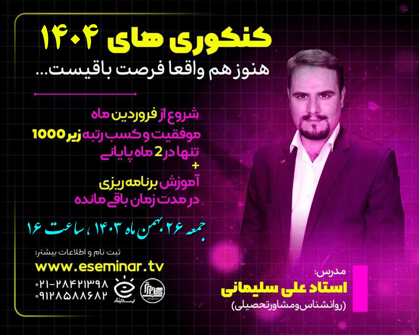 مدرس دوره : استاد علی سلیمانی « روانشناس _ مشاور تحصیلی و هیپنوتیزور »