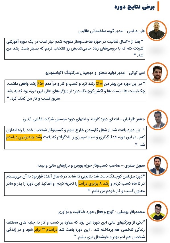 • دورهای بیزینس کوچینگ و پرورش قهرمان کسب وکار