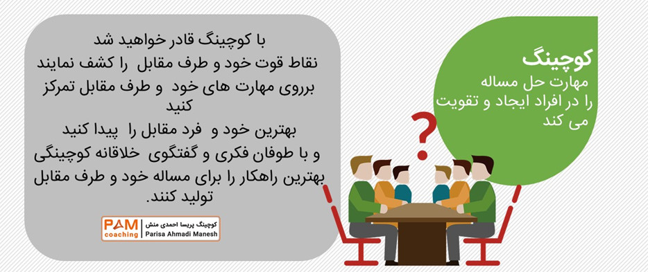 کوچینگ مهارتی است که کمک میکند افراد یا سازمانها بهترین راه حل را پیدا کنند .