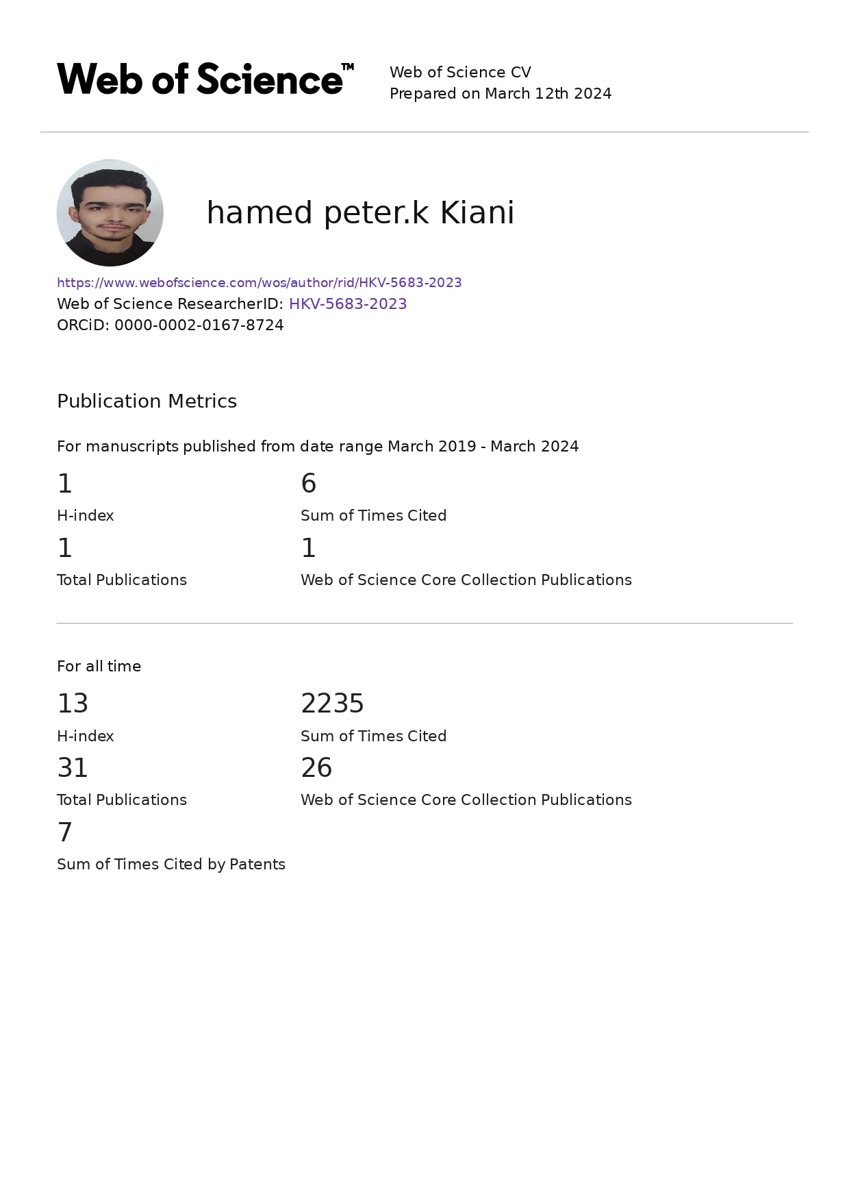 دارای دیپلم افتخار مکاترونیک و رباتیک همچنین مدرک مستر کلاس هوش مصنوعی از موسسه بین المللی alison آمریکا