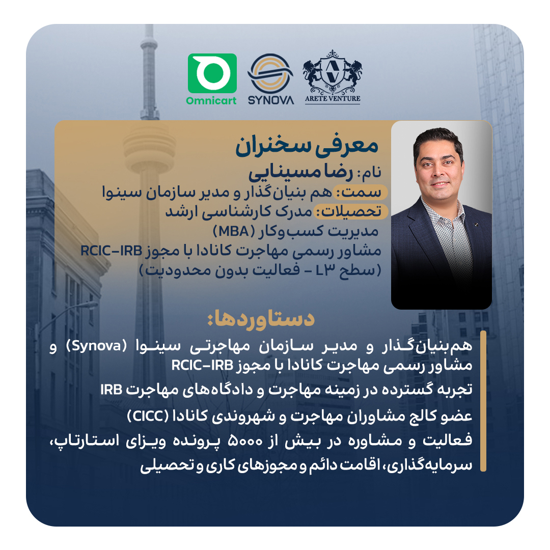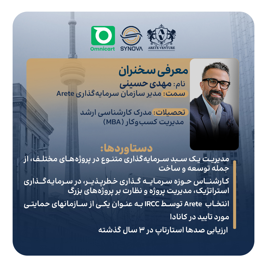 در این رویداد که توسط سازمان مهاجرتی سینوا برگزار خواهد شد با مهدی حسینی، مدیرعامل ایرانی سازمان سرمایه‌گذاری خطرپذیر Arete VC گفتگو خواهیم کرد و جزئیات از برنامه استارتاپ کانادا را جویا خواهیم شد. همچنین آریا رشتچیان، بنیان‌گذار ایرانی استارتاپ موفق Omnicart و کارآفرین جوان برتر کانادا داستان جذاب راه‌اندازی و موفقیت کسب‌و‌کار بین‌المللی خود را روایت خواهد کرد.